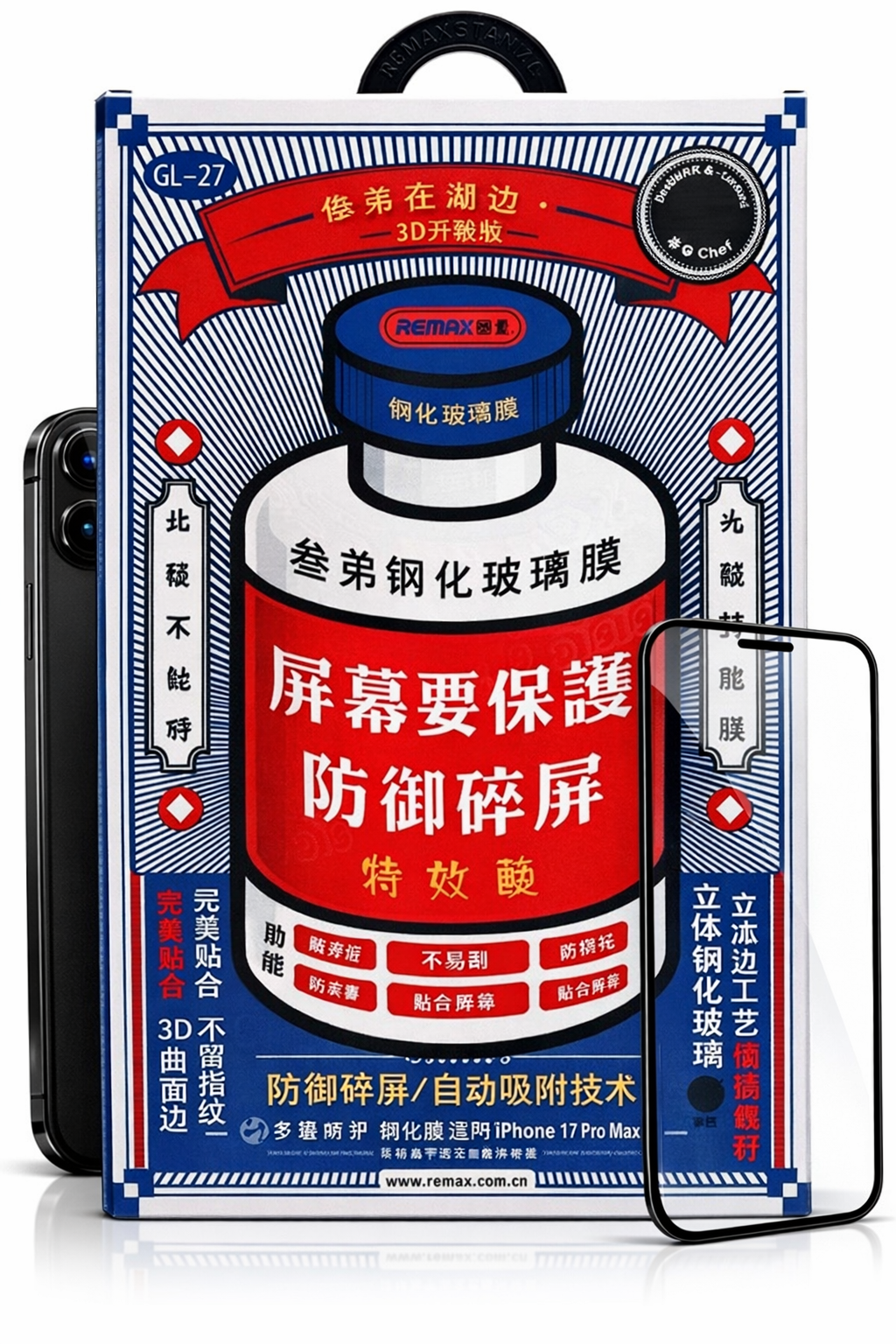 Защитное стекло Remax 9Н для iPhone 17 Pro Max С черной рамкой